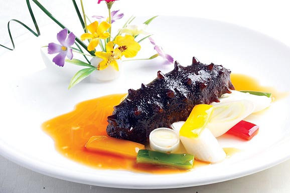 5、由于如意海參要經(jīng)過(guò)包蒸改刀裝盤(pán)澆汁等工序,所以要輕拿輕放,以防把如意海參弄撒,影響成菜的美觀。
